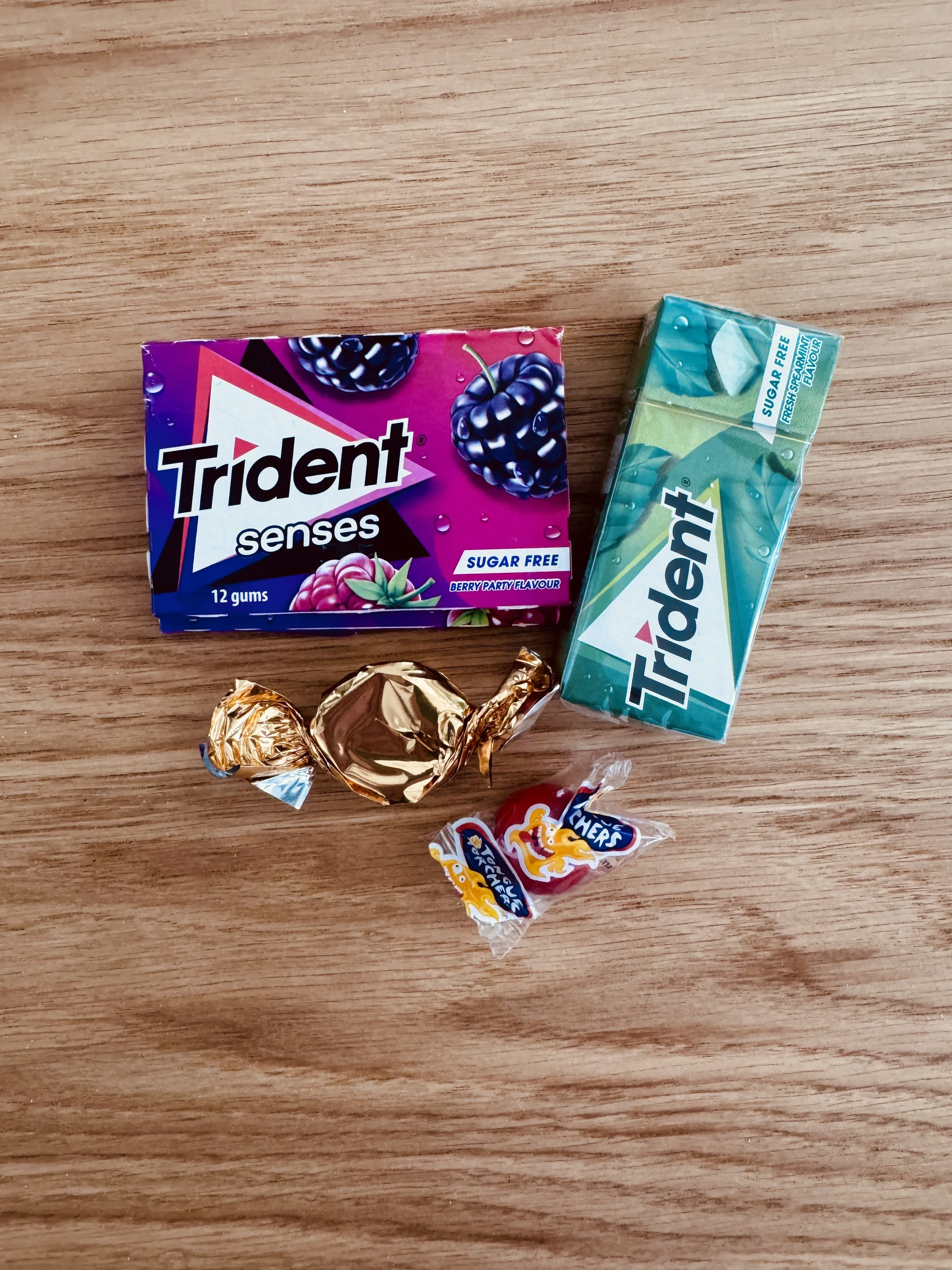 Hard candy or gum. Something strong is best, whether it’s sour, spicy, or minty. This could be atomic fireballs, warheads, jolly ranchers, lemon drops, spearmint gum, or mints, to name a few. Taste, sight, possibly smell and sound.